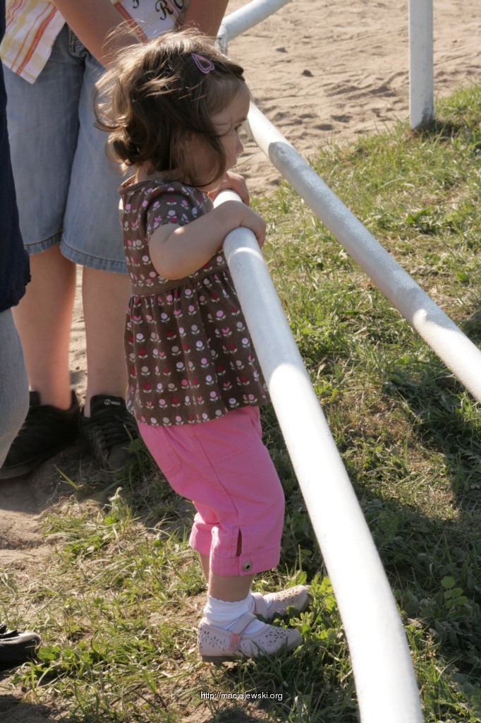 Wczoraj, czyli w niedziele 3 maja 2009 byli?my w pobliskim Iwnie na konnych zawodach w skokach przez przeszkody. To?ka konie lubi ogl?da?, ale tylko z daleka. Mimo mo?liwo?ci pog?askania i potrzymania za uzd? nie chcia?a by? tak blisko.